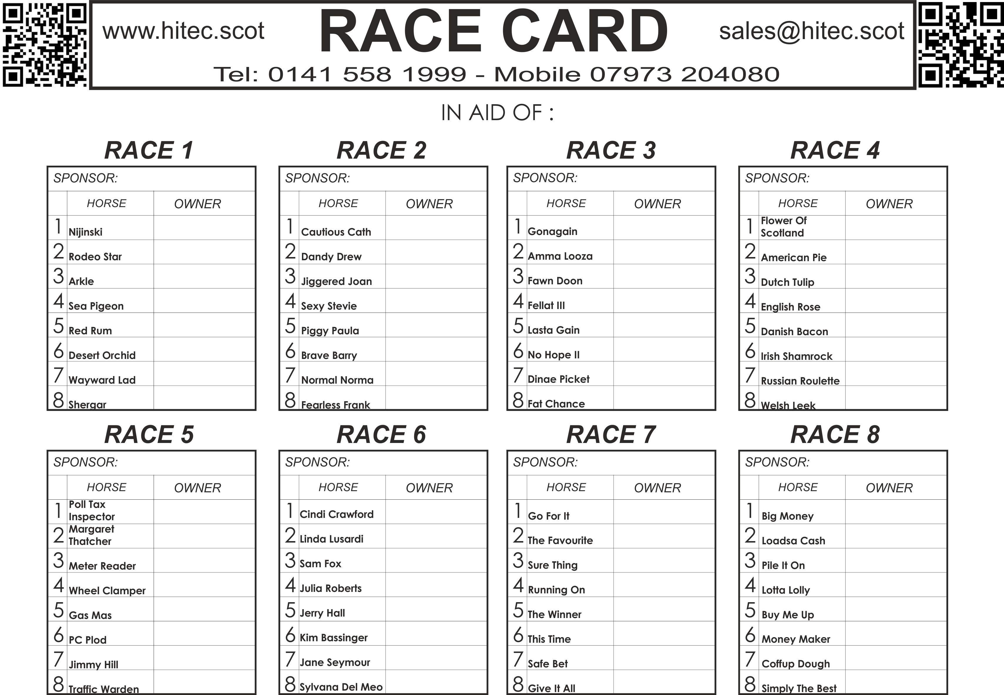 View a copy of our Unnamed Racecard (right click the photo then save as to download a copy as a jpg for printing): Unnamed Racecard